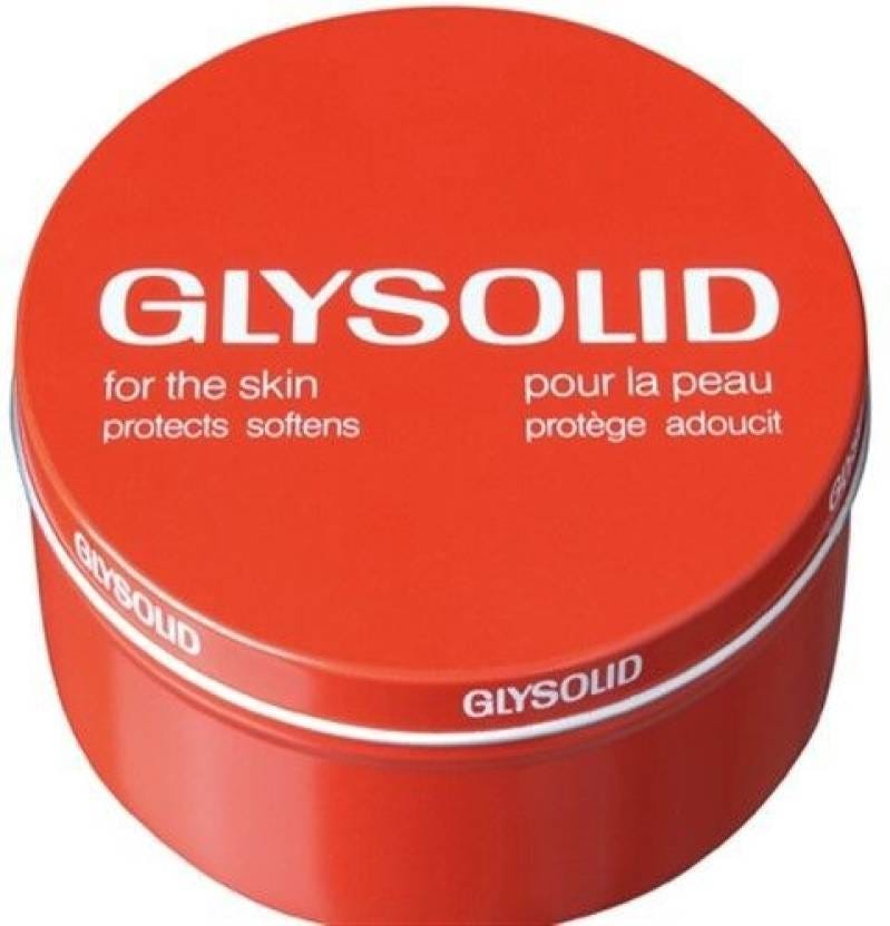 Gly Solid is a cold cream, an emulsion of water and certain fats, usually including beeswax and various scent agents, designed to smooth skin and remove makeup.